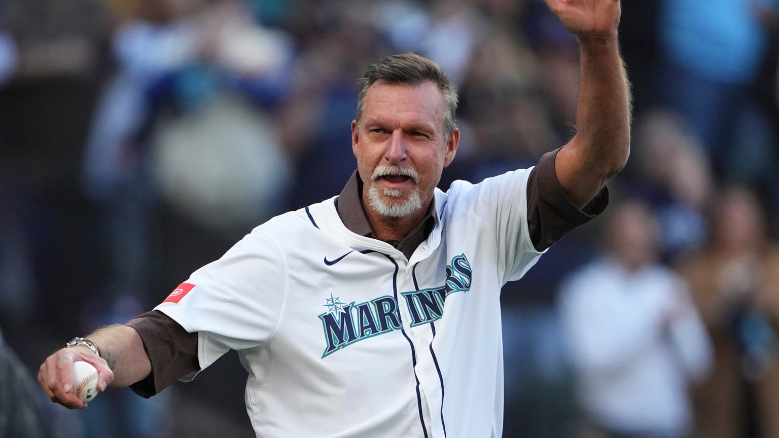 El jueves, previo al Juego 3 de la Serie de Campeonato de la Liga Americana entre los Azulejos y los Marineros, Randy Johnson lanzó la primera bola en el T-Mobile Park