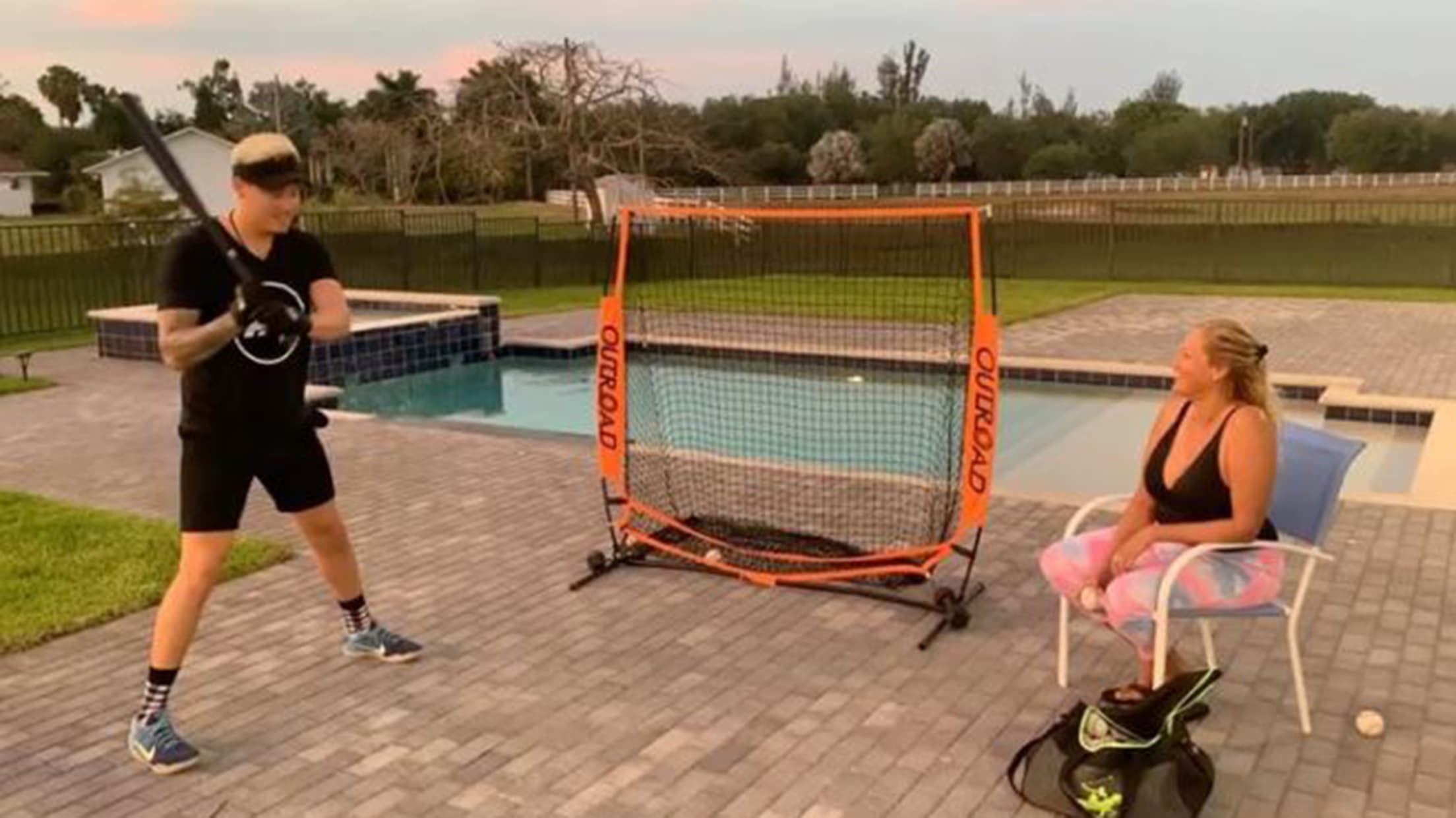 Con una compañera de entrenamientos como ella, Flores va a estar preparado para darle con todo cuando se reanuden las actividades de Grandes Ligas.