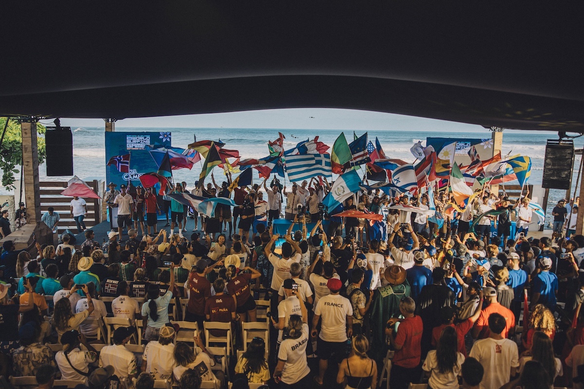 La icónica Ceremonia de las Arenas del Mundo de la ISA reunió a representantes de cada nación, quienes vertieron arena de sus playas de origen en un mismo contenedor como símbolo de la unión pacífica de las naciones del mundo a través del surf.
