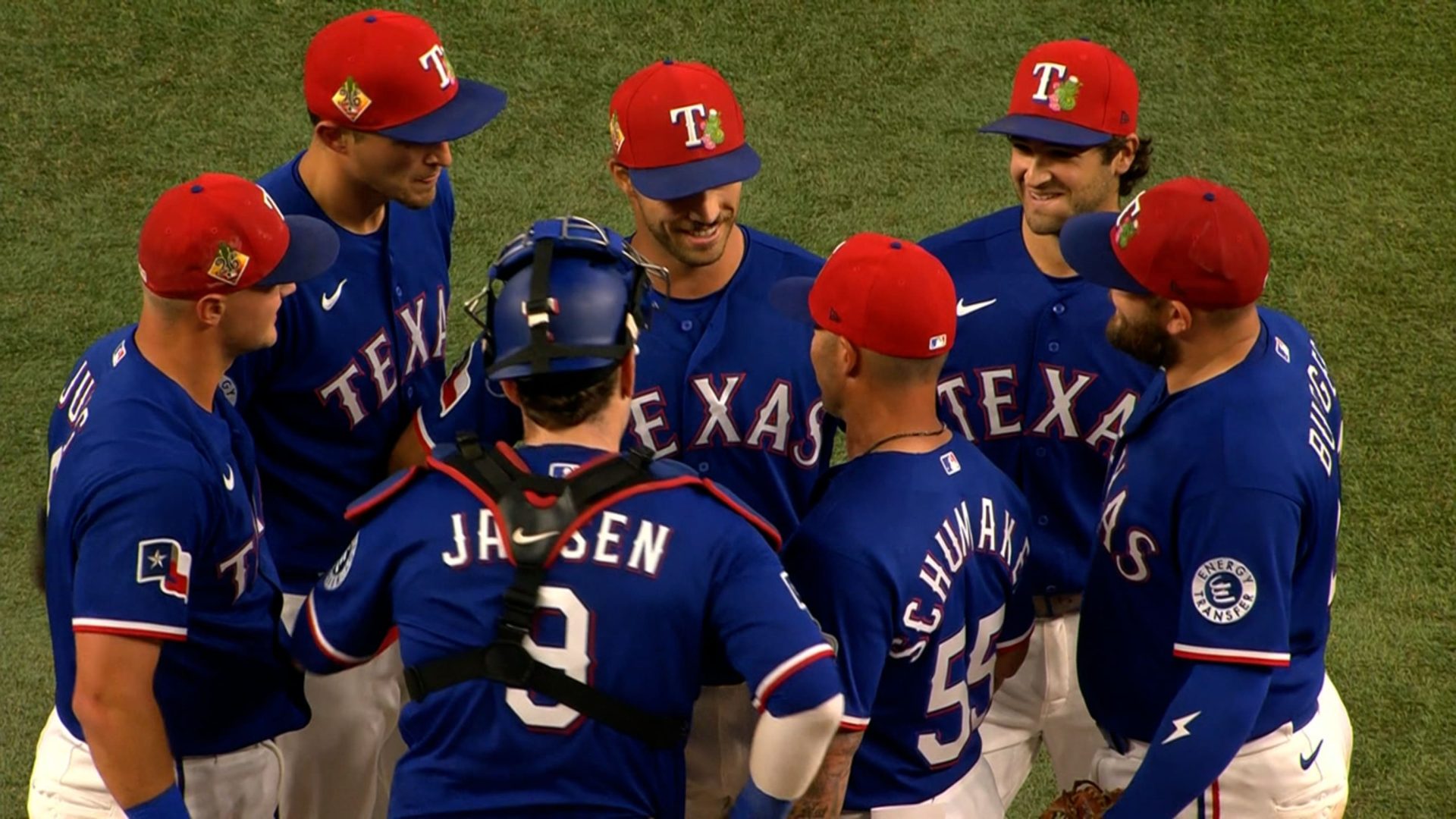 Baumler indujo roletazos de los dos primeros bateadores que enfrentó, Starling Marte y Jonathan India, antes de que Schumacher repentinamente saltara de los escalones del dugout. Los jugadores del cuadro de los Rangers se reunieron y Schumaker le dio la buena noticia a Baumler, ante una visita llena de risas y sonrisas. La transmisión televisiva de los Rangers se dio cuenta y rápidamente llamó a Baumler para una entrevista durante el juego para confirmarlo. Un acontecimiento trascendental que siempre tiene lugar a puerta cerrada se produjo esta vez al aire libre.