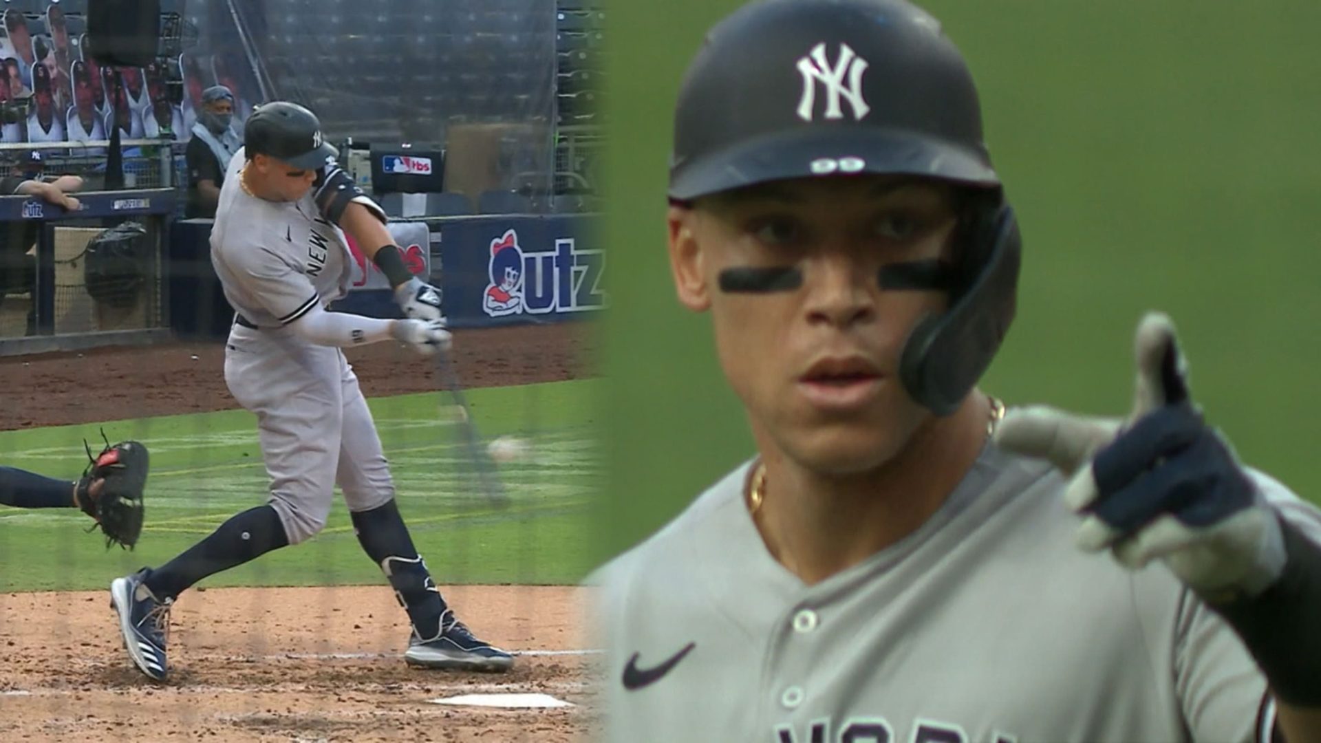 Luego de su lento comienzo de postemporada, Judge puso arriba a los Yankees primero, con un jonrón solitario en la cuarta entrada. Ha dado cuadrangular en tres diferentes juegos de eliminación, con lo que iguala a Bill Skowron, por la mayor cantidad de bambinazos de ese estilo en la historia de la postemporada. De los cuatro hits que tiene en los playoffs del 2020, tres han sido cuadrangulares.