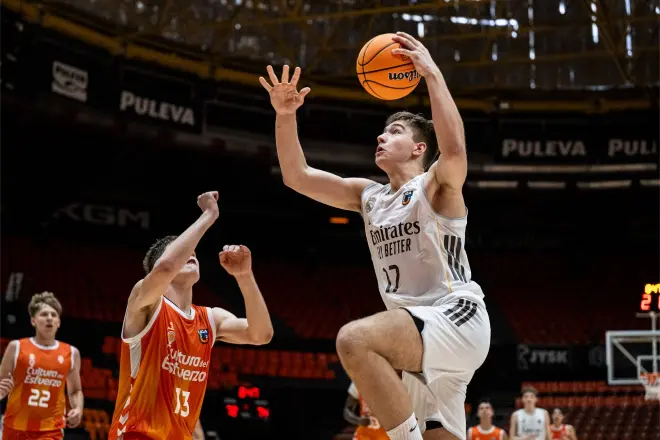 Egor Amosov, la última perla importada por la cantera del Real Madrid, dio el primer recital en la Liga U. El alero ruso de 17 años (cumplirá 18 en enero) y 1,97 metros anotó 42 puntos en tan sólo 27 minutos en el triunfo de los blancos sobre el Valencia Basket por 85-107.