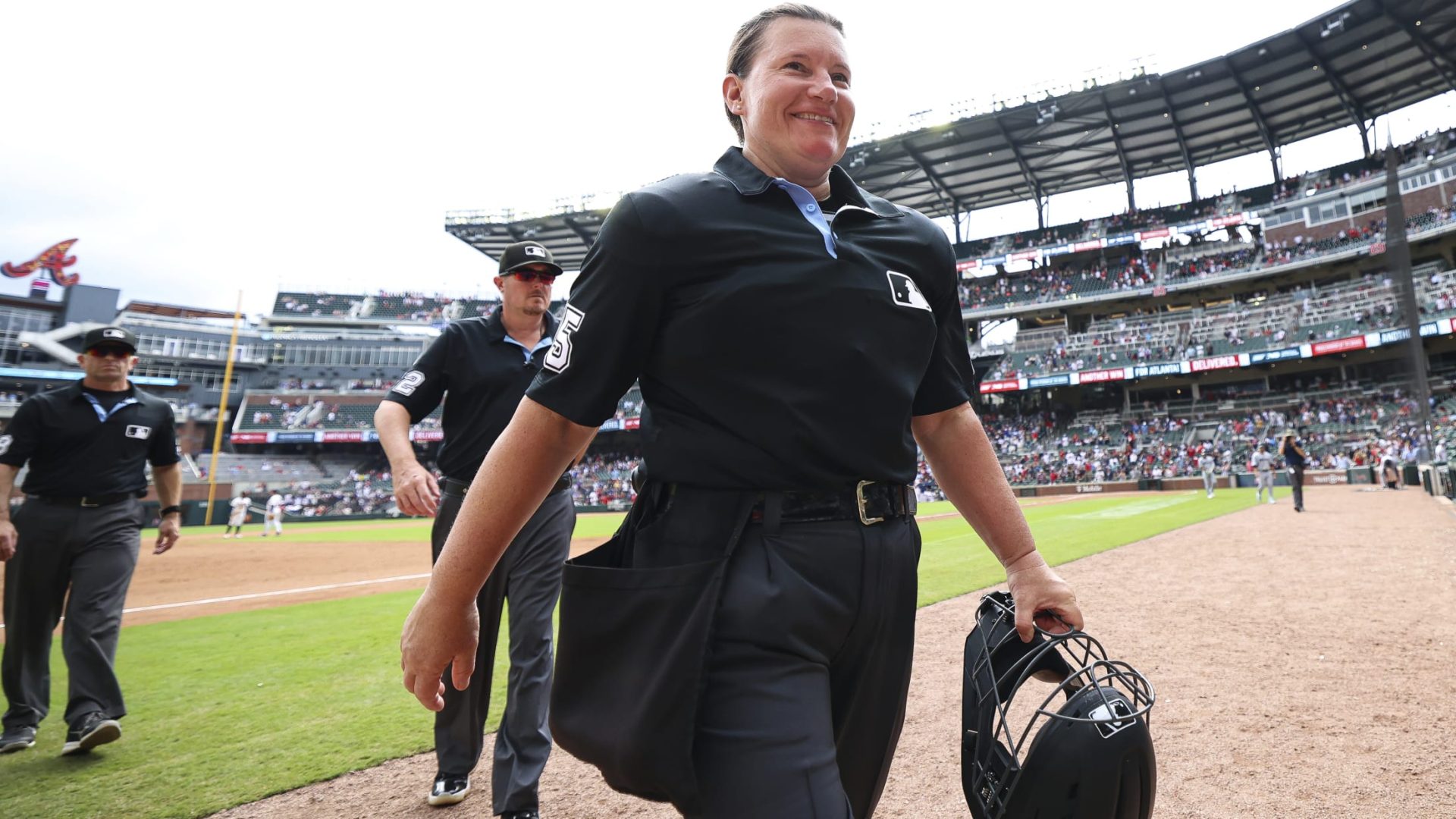 Aun así, esto fue algo distinto. Esto fue alcanzar la cúspide del arbitraje y ser la primera mujer en lograrlo. Y el domingo fue algo diferente nuevamente cuando se puso una careta y tomó su lugar detrás del home en un juego de las Mayores.