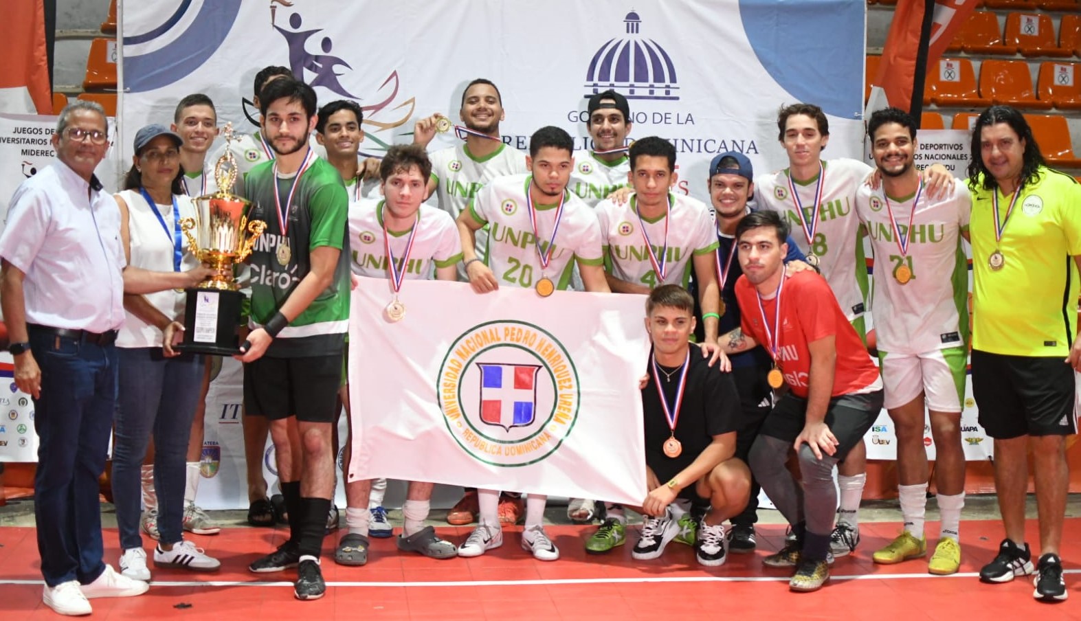 -Los equipos de la Universidad Nacional Pedro Henríquez Ureña, fueron los campeones del torneo de fútbol sala universitario, celebrado con los auspicios del Ministerio de Deportes, como parte del programa del 2024 de la Comisión Nacional de Deportes Universitario. Fuente Externa