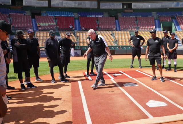 La clínica a los árbitros dominicanos se llevó a cabo en el terreno del estadio Quisqueya y fue impartida, además de Young, por los umpires de Grandes Ligas que accionaron en la recién concluida serie entre los Medias Rojas de Boston y los Rays de Tampa.