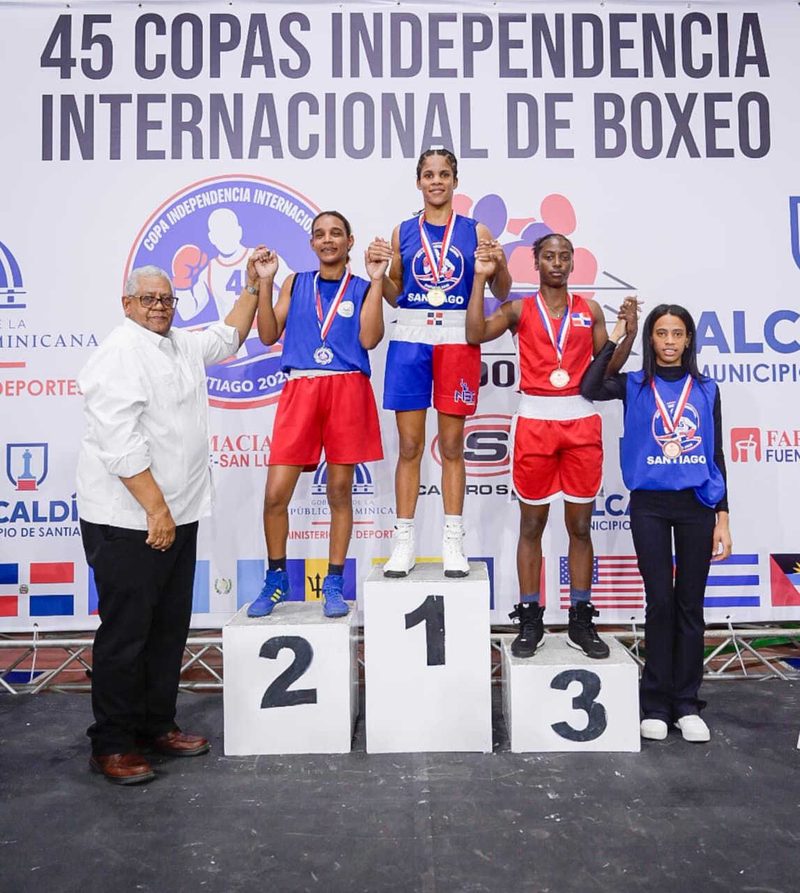 SANTIAGO.-Un total de 19 medallas fueron colgadas en los pechos de las damas peleadoras, en la versión 45 de la Copa de Boxeo Independencia Nacional, que se celebró en el techado del Cupes, de los Pepines, bajo la organización de la Asociación de Boxeo de Santiago y con el aval de la Federación Dominicana.