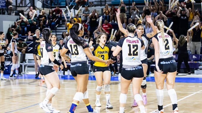 COROZAL, Puerto Rico, 5 de abril de 2024.- Un servicio directo de Seliann Concepción en el quinto parcial, les dio la victoria a las bicampeonas Pinkin de Corozal (1-0) en el primer partido de la serie semifinal B de la Liga de Voleibol Superior Femenino (LVSF) ante las Atenienses de Manatí (0-1).