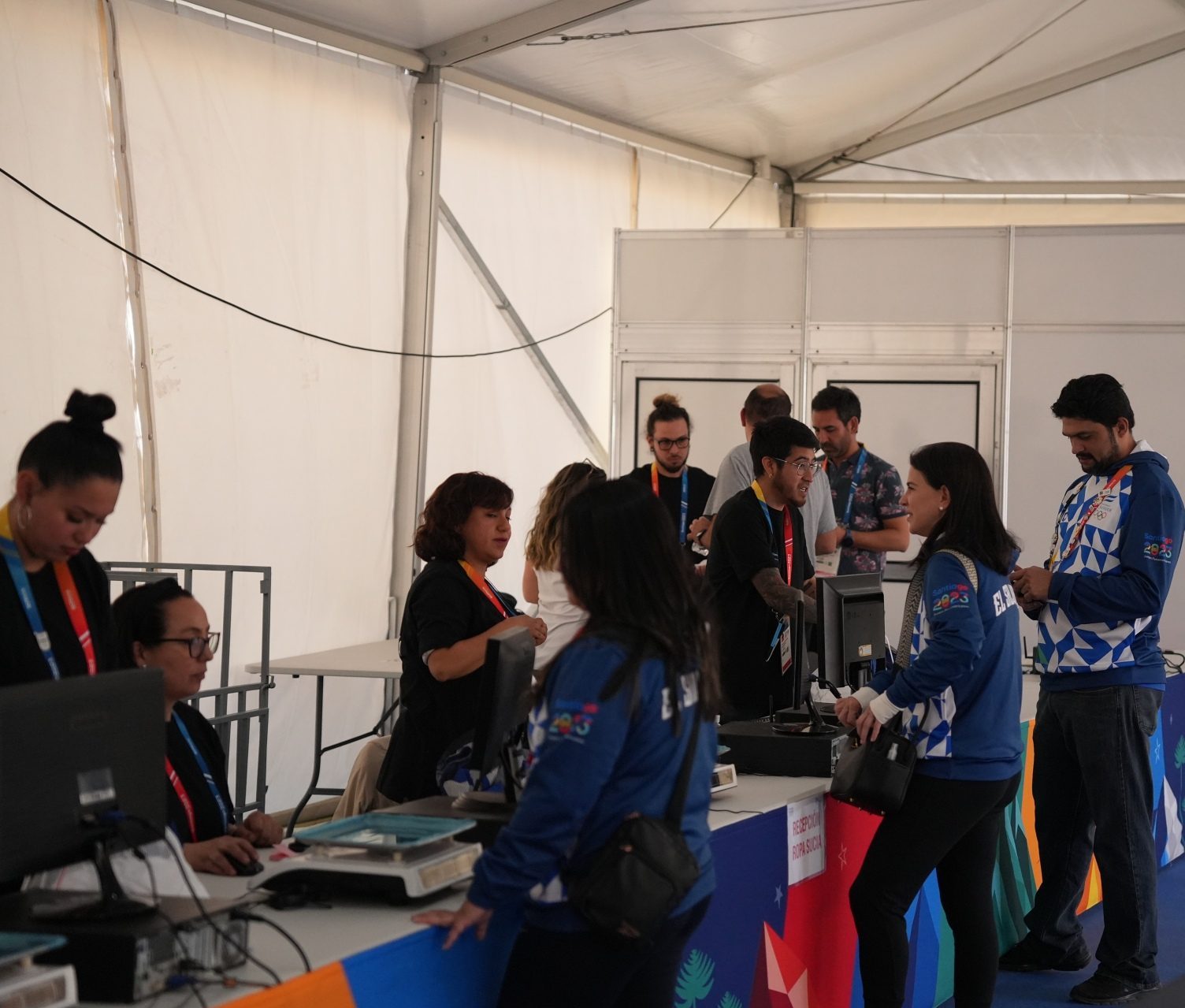 «Sólo este lunes, cuando los primeros atletas comenzaron a llegar a la Villa Panamericana de Cerrillos, recibimos casi un centenar de kilos de ropa, cantidad que ha ido aumentando en los últimos días, pero estamos preparados para lavar hasta 3 toneladas de ropa diariamente», asegura Salinas.