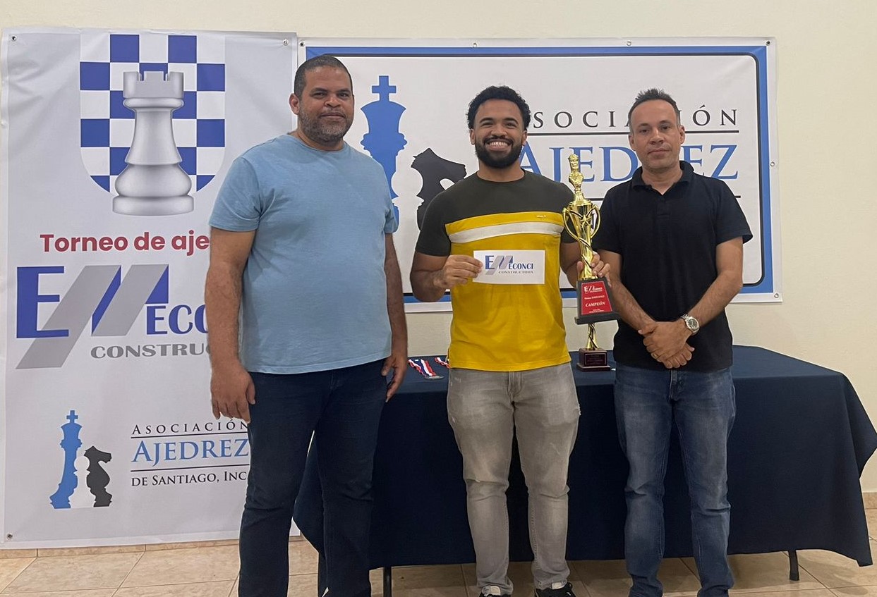 Santiago. El Maestro FIDE y miembro del equipo olímpico de ajedrez dominicano Leandro Jiménez se consagró campeón del Torneo de Ajedrez EMECONCI 2024 al acumular 5 puntos producto de 4 victorias y dos empates.