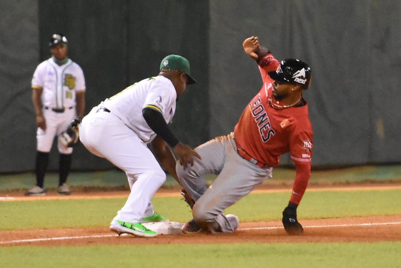 En esta oportunidad, los escarlatas fabricaron tres anotaciones ante Edwin Uceta, a quien Iván Castillo le pegó sencillo al central y Engel Beltré al jardín derecho, al igual que Franchy Cordero, impulsando a Castillo. Con Beltré corriendo en la antesala, Jimmy Paredes conectó elevado al central para empujar la segunda rayita roja. Un passed ball del receptor Rodolfo Durán llevó a Cordero a tercera desde donde alcanzó la registradora por imparable de René Pinto al bosque izquierdo.
