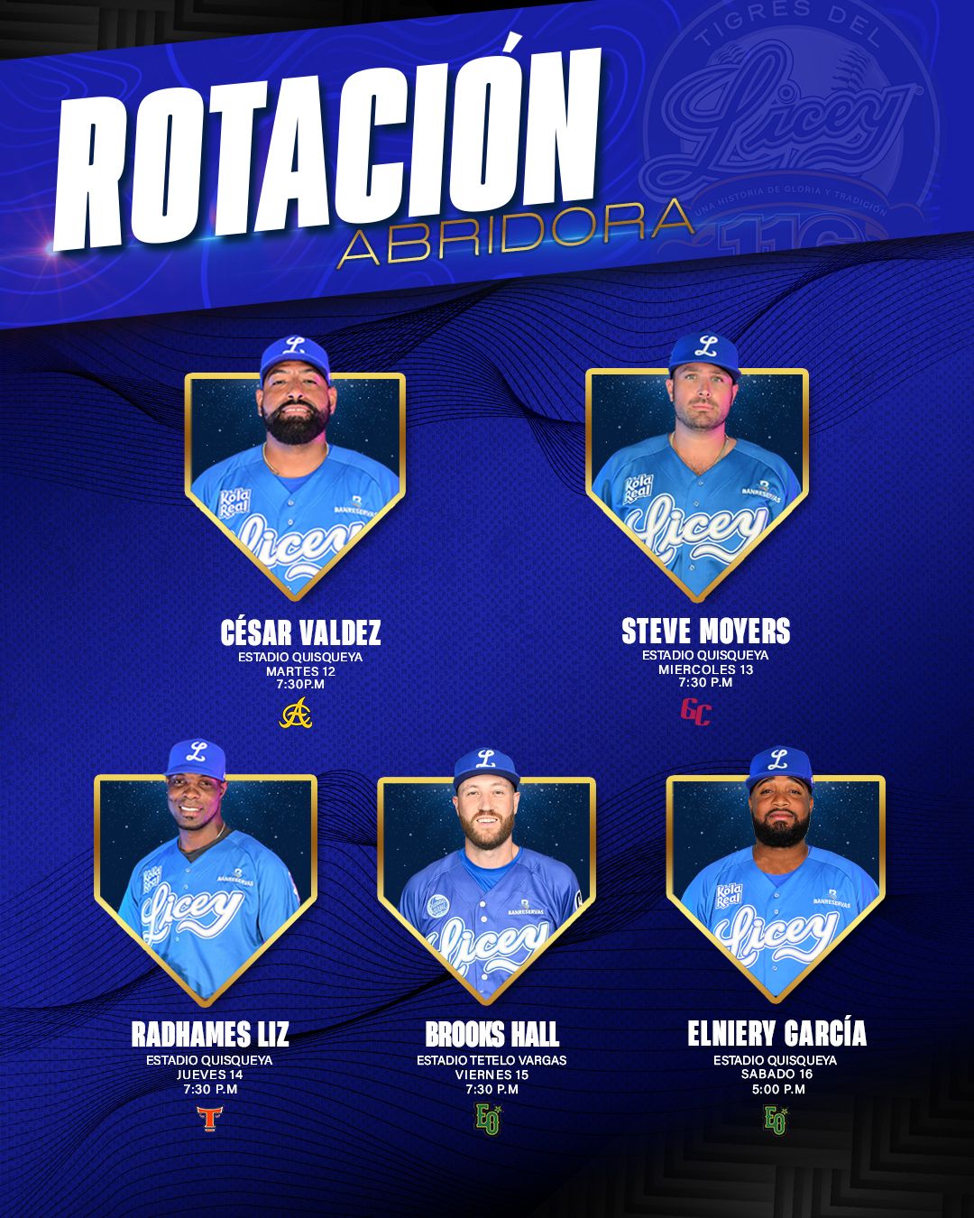 SANTO DOMINGO.- Los Campeones Nacionales y del Caribe, Tigres del Licey anunciaron su rotación para los próximos cinco partidos de la Liga de Béisbol Profesional de la República Dominicana.