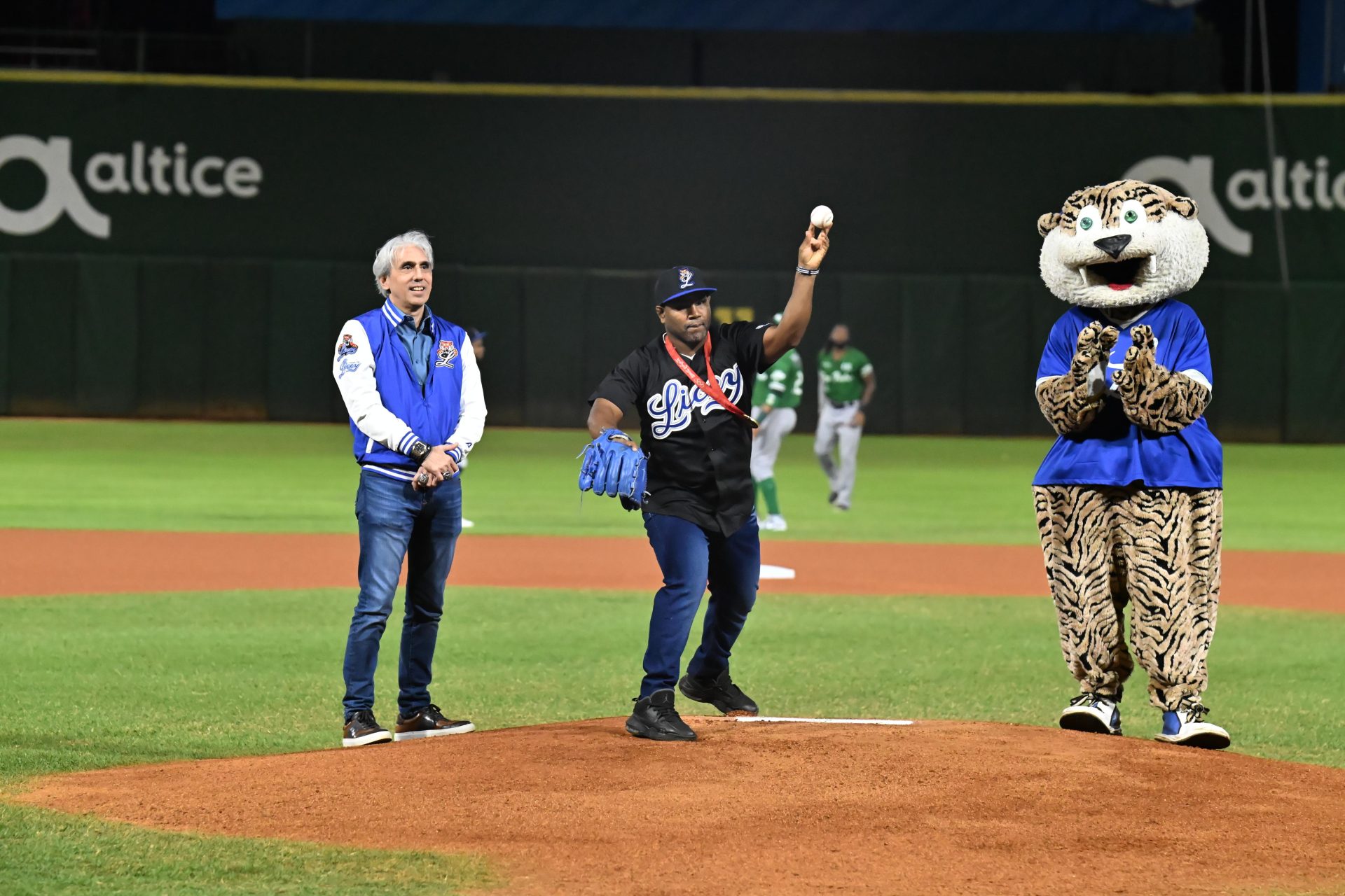 El expugilista fue el encargado del lanzamiento ceremonial de la primera bola junto al también medallista olímpico, Anderson Hernández, leyenda de los azules y coach de primera base del equipo dominicano que ganó la medalla de bronce en los Juegos Olímpicos de Tokyo 2020. El boxeador dominicano fue acompañado por su esposa, Melody Uribe, y sus hijos Jenifer, Melody y Adonis Diaz.