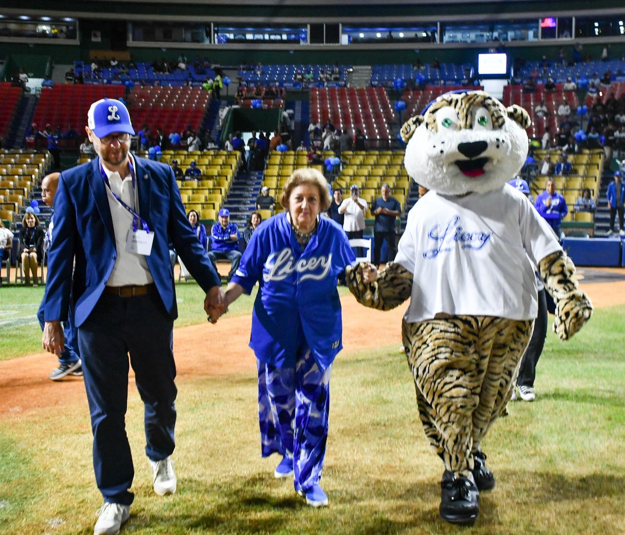 SANTO DOMINGO .- Los Tigres del Licey rindieron homenaje a la señora Matilde Dargam, vicepresidente de la rama femenina del Club Atlético Licey, previo al partido contra los Toros del Este este viernes siete de noviembre en el Estadio Quisqueya Juan Marichal, en el aniversario 118 de la organización.