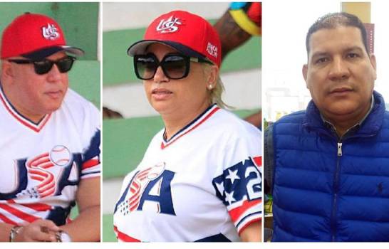 Los esposos Joaquín y Joselyn Vásquez perdieron la vida en un accidente automovilístico en el 2020. A la derecha el empresario Manny Reyes, patrocinador de la Liga Rolando Paulino, quien está apoyando la actividad conmemorativa en homenaje a la familia Vásquez. (Fuente Externa)