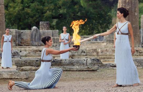 Grecia hizo entrega de la llama olímpica a los organizadores de los Juegos de Tokio-2020; en el estadio Panathinaikó de Atenas, vacío de público debido a la pandemia del nuevo coronavirus. (Fuente Externa)