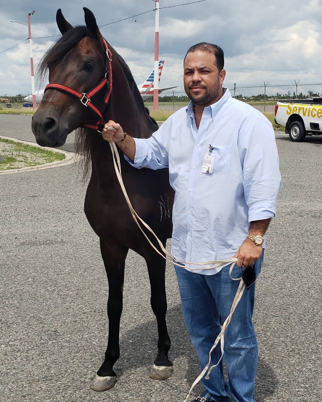 El licenciado Arnulfo Gutiérrez Almonte (Fito), una autoridad del paso fino reconocido internacionalmente, fue la persona encargada de recibir en equino a su llegada al aeropuerto.