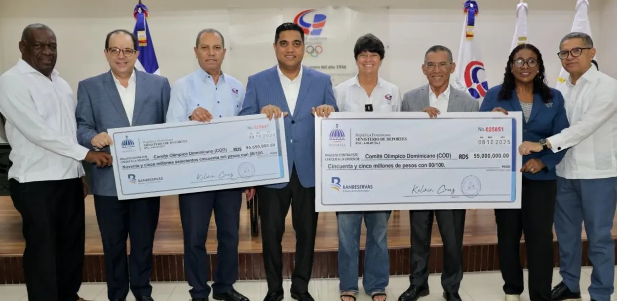 El ministro de Deportes, Kelvin Cruz, entregó este miércoles al Comité Olímpico Dominicano los recursos para la preparación y organización de las delegacionesque tomarán parte en los XX Juegos Bolivarianos Ayacucho-Lima 2025 y los XXV Juegos Centroamericanos y del Caribe Santo Domingo 2026.