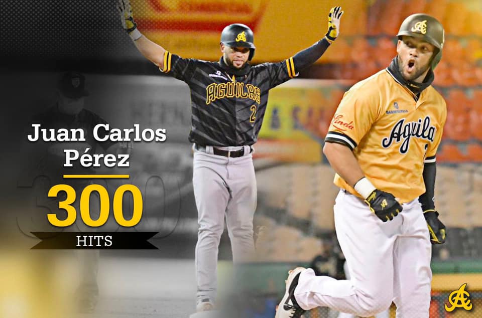 SANTIAGO.- Al completar una década con el uniforme de las Águilas Cibaeñas, Juan Carlos Pérez logró esta temporada 2020, la selecta marca de 300 hits conectados, en series regulares de la pelota dominicana.