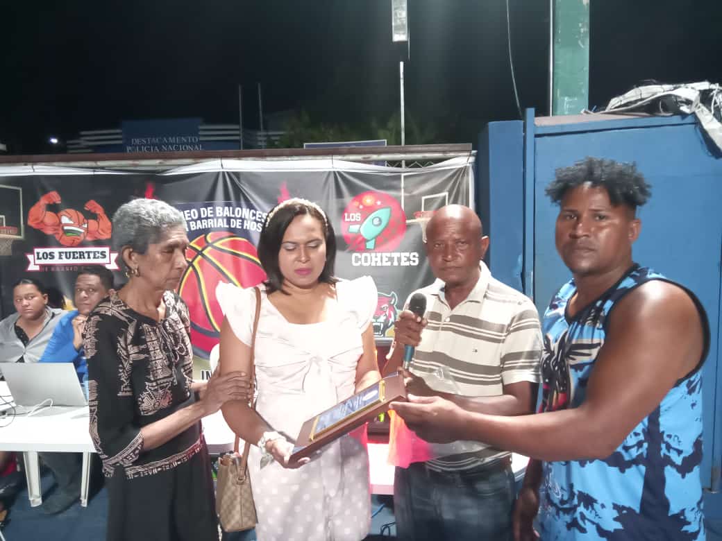 Previo a concluir el segundo partido el comité organizador entregó una merecida placa de reconocimiento inmemorian a Juan Carlos Herrera (Moreno Papaliam) por sus valiosos aportes en favor del basket de Hostos.