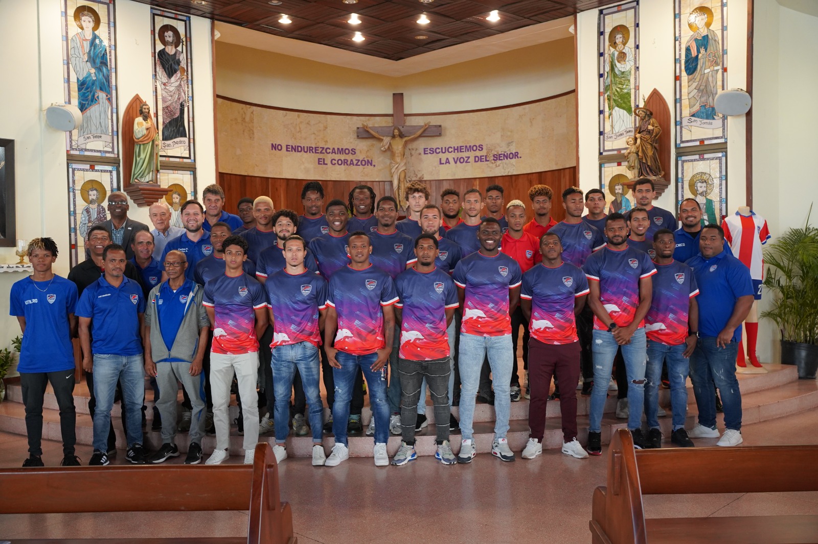 Santo Domingo.- Con una misa oficiada por el padre Eulogio Castaños en la parroquia San Judas Tadeo se inició el acto de lanzamiento de los Delfines del Este FC, equipo que el próximo viernes sostendrá contra los campeones Cibao FC el partido inaugural de la temporada 2024 de la Liga Dominicana de Fútbol.