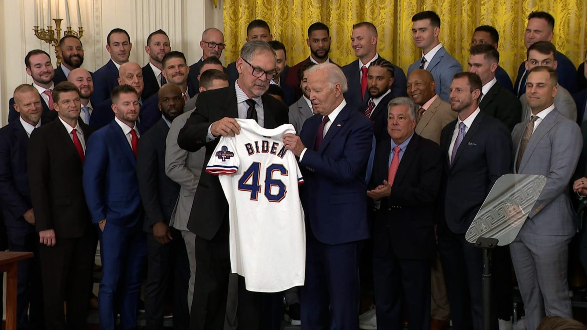 “Están de vuelta en la capital de la nación como campeones mundial y se lo merecen”, dijo Biden en referencia al equipo que en algún momento se llamó los Washington Senators antes de mudarse a Texas en 1972. “Creo que hay una palabra que ustedes representan: resiliencia”.