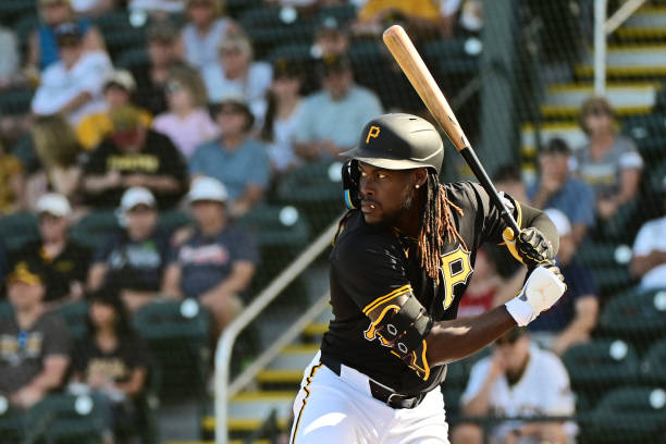 BRADENTON, FLORIDA - FEBRUARY 27: Oneil Cruz #15 of the Pittsburgh Pirates at bat in the fifth inning against the Atlanta Braves during a Grapefruit League Spring Training game at LECOM Park on February 27, 2024 in Bradenton, Florida. (Photo by Julio Aguilar/Getty Images)