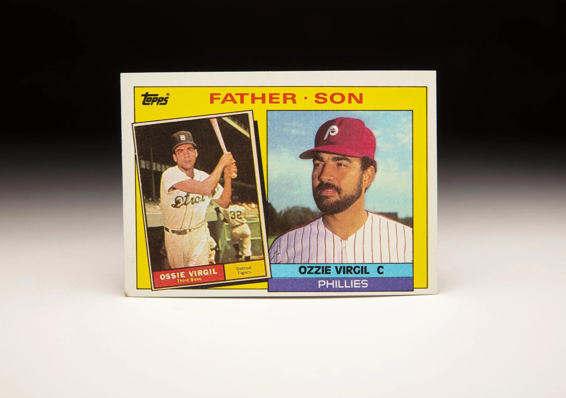 Osvaldo José Virgilio era el nombre tanto del padre como del hijo representado en la tarjeta número 143 en 1985, pero el mayor de los Virgil fue identificado como «Ossie» en sus días como jugador en comparación con «Ozzie» para el hijo. El reverso de la tarjeta proporciona información biográfica básica y estadísticas de ambos jugadores. Pero para Ozzie padre, la historia estaba un poco incompleta.