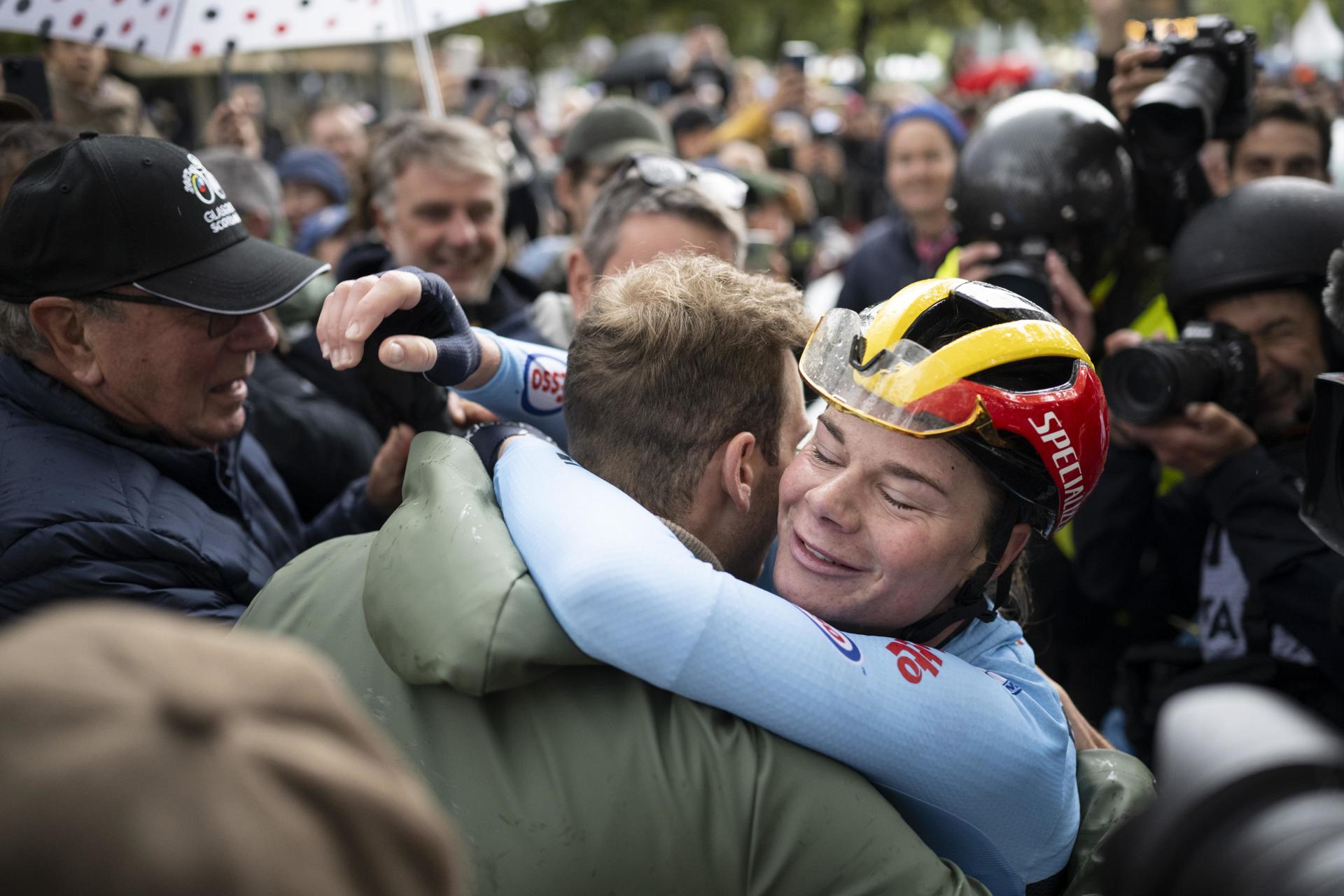 De las ocho, ni Kopecky, defensora del título, ni Dygert, ni Vos aguantaron el ritmo. Se descolgaron, pero la falta de entendimiento delante provocó el reagrupamiento e incluso a punto estuvo de llegar desde todavía más atrás Markus. Ahí estuvo la clave. La belga se rehizo de su crisis y la yanqui llegando desde atrás terminaron siendo las grandes beneficiadas.
