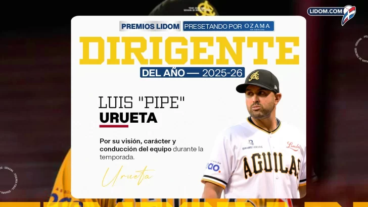 SANTO DOMINGO (Lidom.com).- Luis “Pipe” Urueta fue escogido Manager del Año del campeonato de béisbol profesional 2025-2026 de la Liga de Béisbol Profesional de la República Dominicana (LIDOM), tras una destacada actuación al frente del conjunto de las Águilas Cibaeñas, anunció la liga este lunes por medio de un parte de prensa.