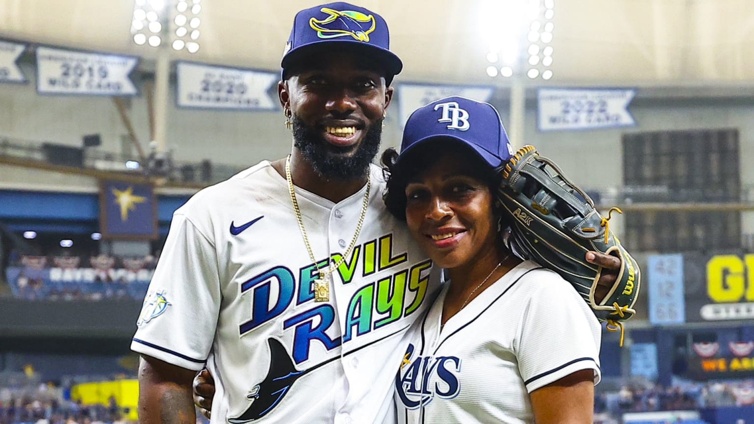 «Estoy muy contento y bendecido de que esté aquí», dijo Arozarena. «También es importante que ella vaya a verme jugar en los playoffs, [por lo que] es importante para mí que ella esté aquí en un partido como éste».