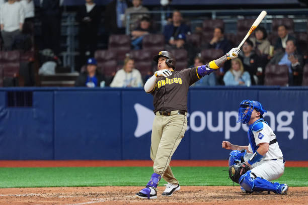 El jonrón fue el único hit de Machado en siete turnos al bate durante la primera serie de MLB que se juega en Seúl, pero consiguió tres bases por bolas.