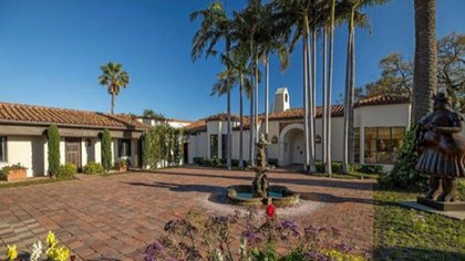 La casa fue construida en 1934 y fue renovada con el paso del tiempo. En la entrada se puede ver un camino enlosado hasta llegar al ingreso, en el que se destaca una enorme fuente de piedra entre palmeras. La residencia principal -tiene otras dos para huéspedes independientes- tiene más de 800 metros cuadrados y dispone de cuatro dormitorios en suite, ocho baños y siete chimeneas. Un comedor con una fuente, techo abovedado y tragaluces inmensos que iluminan la estancia con luz natural. Una biblioteca alfombrada, con vigas en el techo y con una sala contigua para los trofeos. Además, cuenta con una fantástica sala de cine.