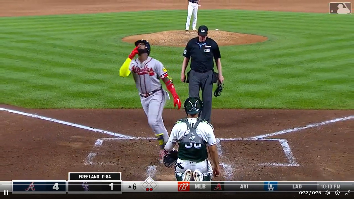 Marcell Ozuna conectó su cuadrangular 227 de su carrera y por segunda vez dispara treinta o más en una temporada en la victoria de Atlanta por 7-3 sobre los Rockies en Denver, Colorado.