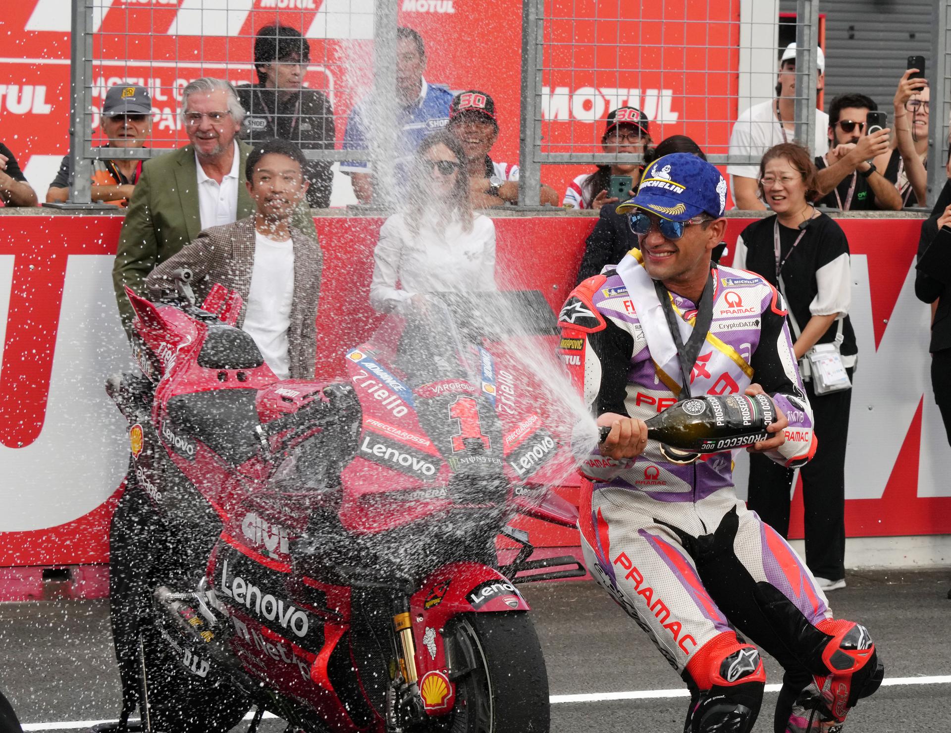 Martín sumó su quinta victoria en una carrera «sprint» de la temporada y la tercera consecutiva tras las de San Marino e India, y con ella ha recortado en cinco puntos las diferencias con el líder del mundial, el italiano Francesco «Pecco» Bagnaia (Ducati Desmosedici GP23), que ahora tiene apenas ocho puntos de ventaja, 299 frente a los 291 del madrileño.