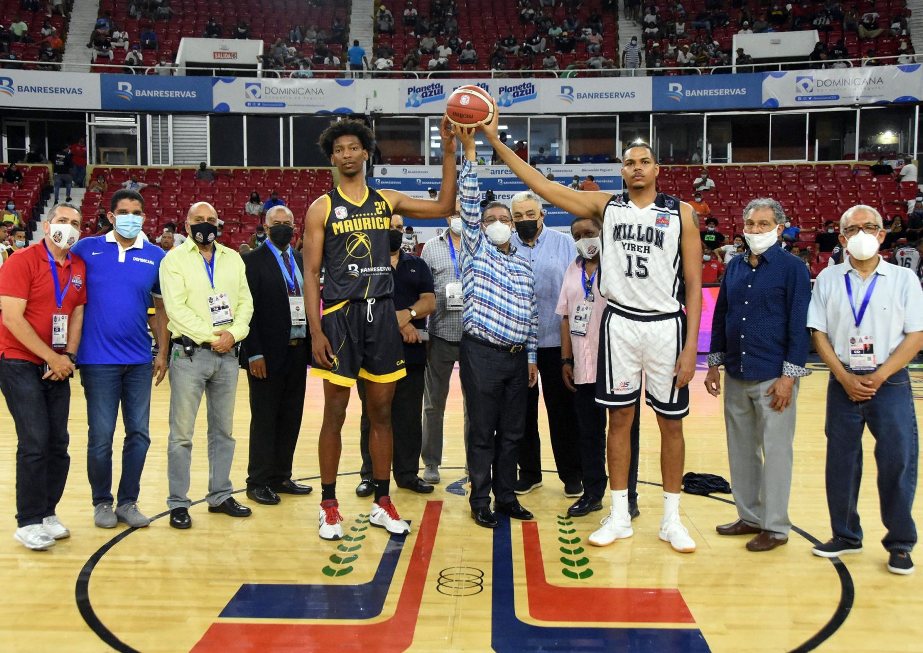 El ministro de Deportes Francisco Camacho, realizó el saque de honor antes de comenzar las acciones en el partido entre los clubes Mauricio Báez y El Millón, en la casa de Don Virgilio, invitado por la Asociación de Baloncesto del Distrito Nacional (Abadina), que preside José Heredia Castillo.