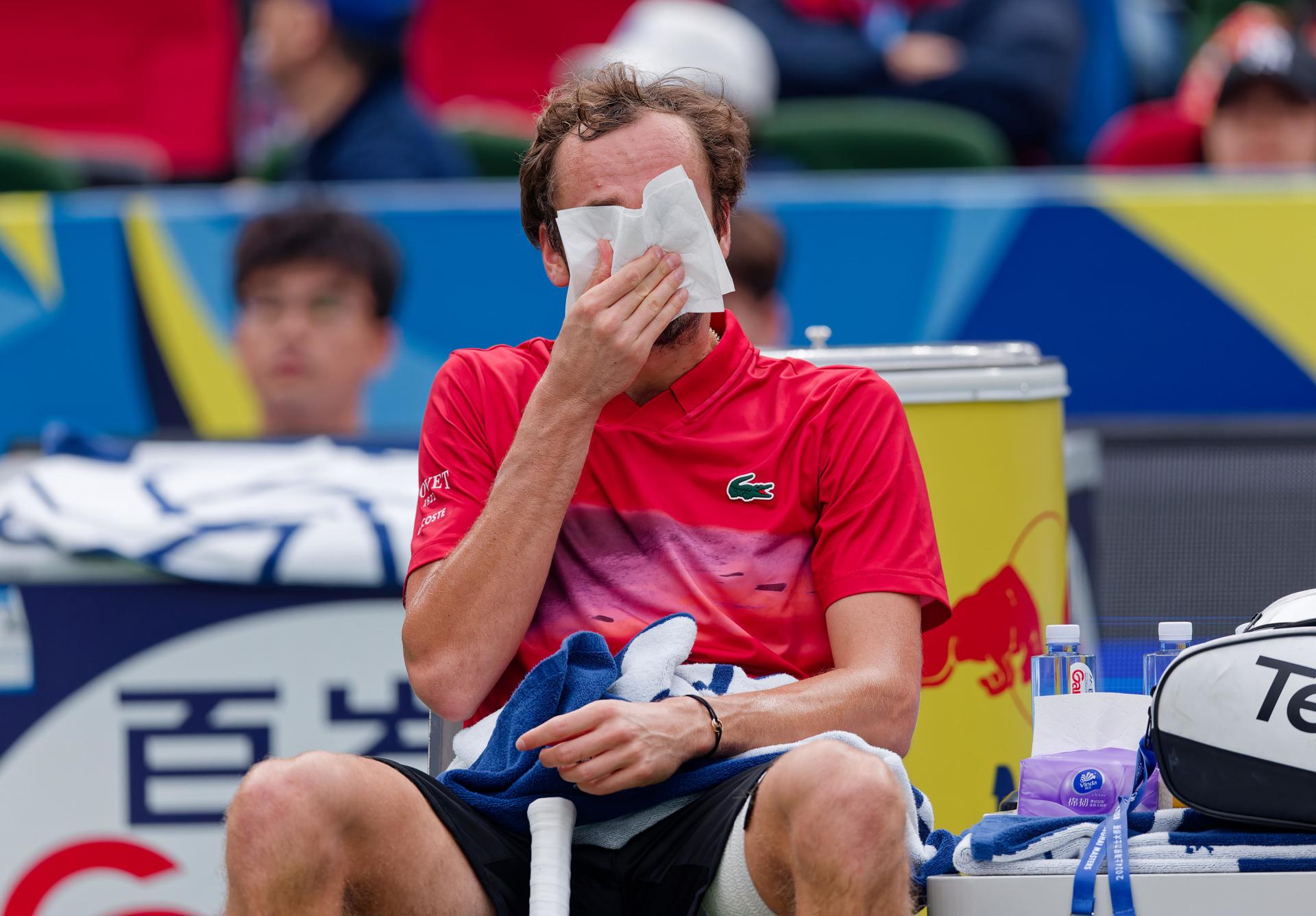En su partido de ayer contra el griego Stefanos Tsitsipas (7-6 (3), 6-3), Medvedev tuvo que pedir la asistencia de un fisioterapeuta, algo que repitió hoy en dos ocasiones contra Sinner, ante quien no ofreció su mejor imagen (6-1, 6-4).
