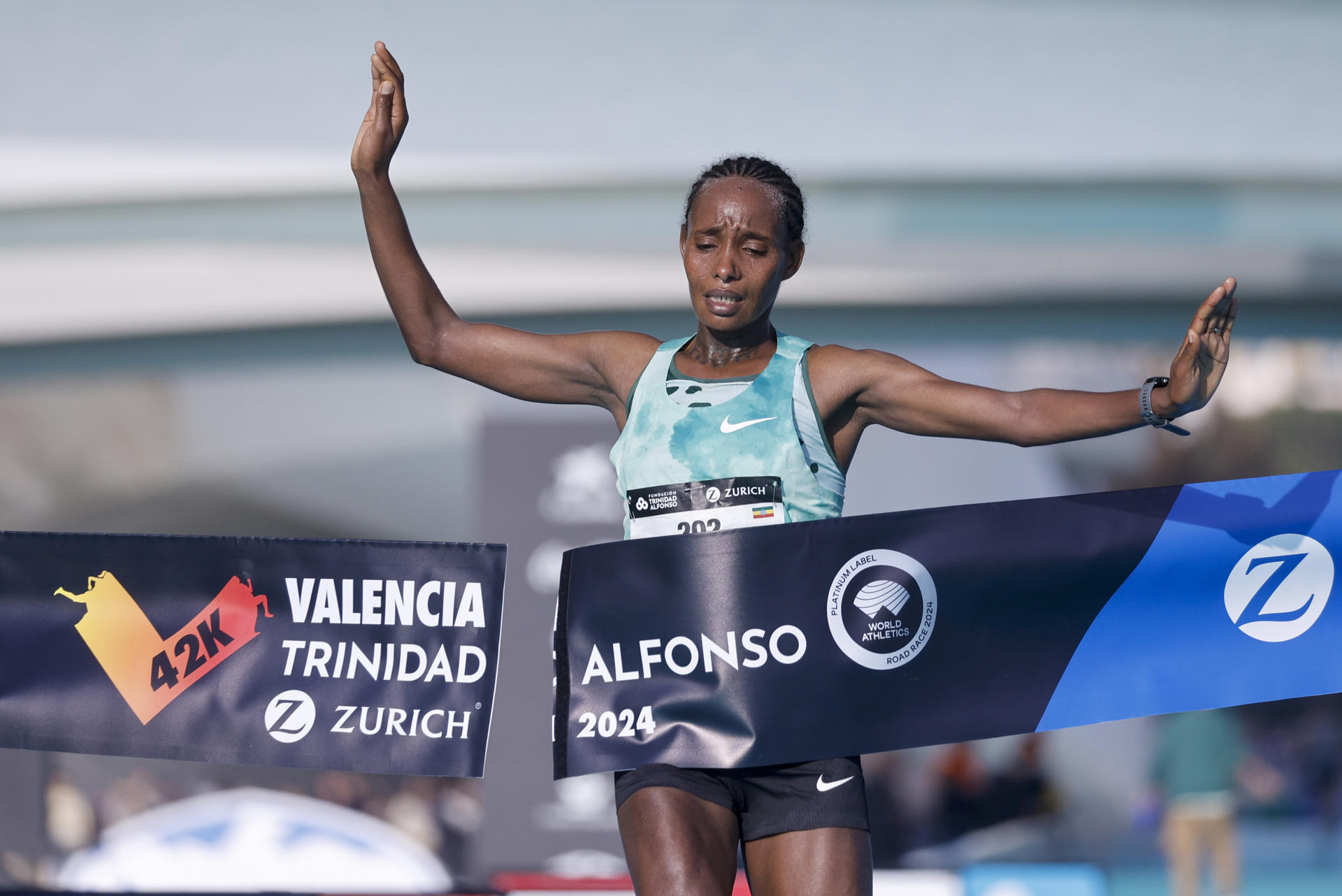 La etíope era la gran favorita en una prueba que estuvo marcada por el homenaje a las víctimas de la dana que hace un mes azotó varias comarcas de Valencia.