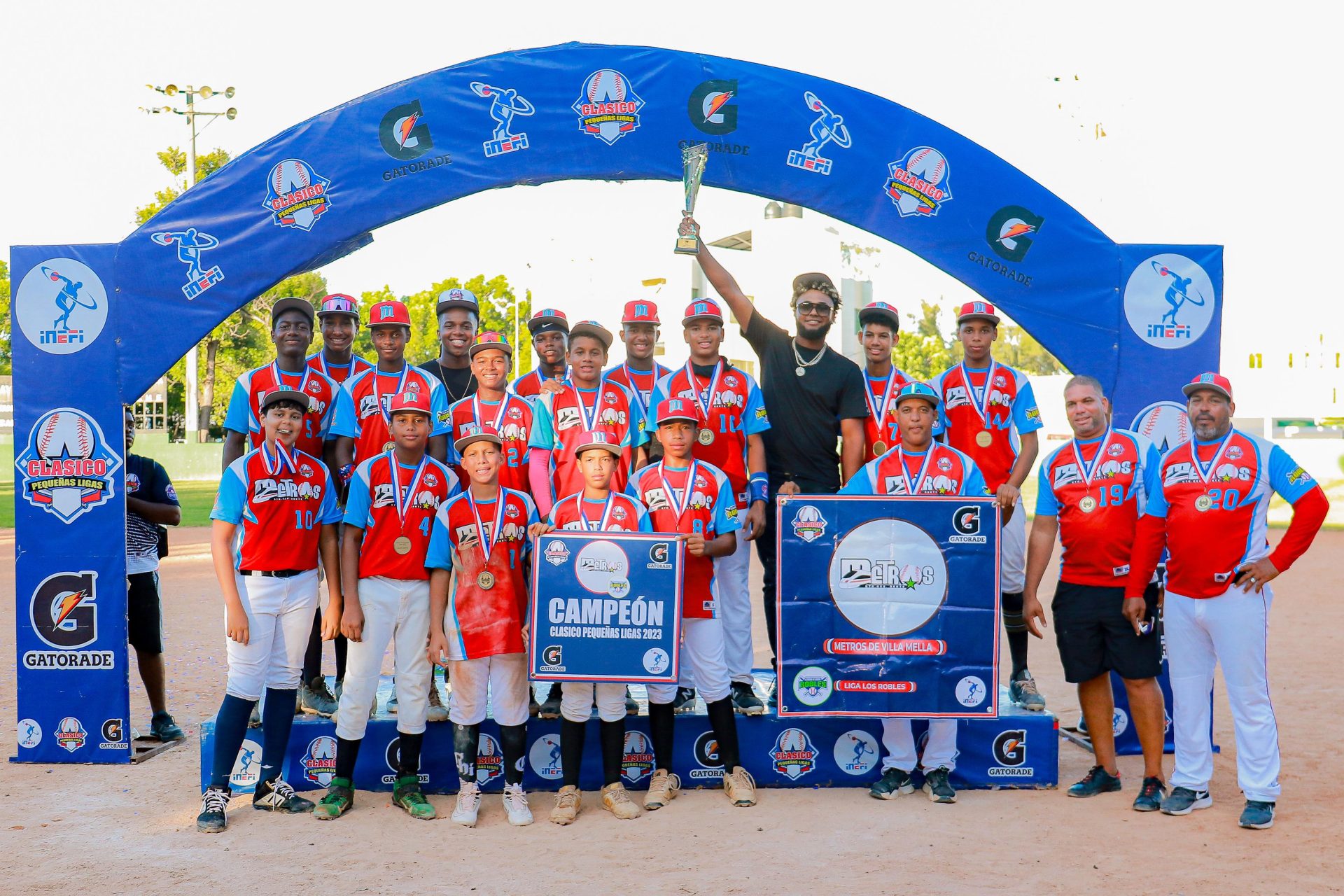 SANTO DOMINGO.- Los Metros de Villa Mella se proclamaron campeones del Clásico de Pequeñas Ligas de Béisbol 2023, que tuvo como embajador al director ejecutivo del Inefi, Alberto Rodríguez Mella.