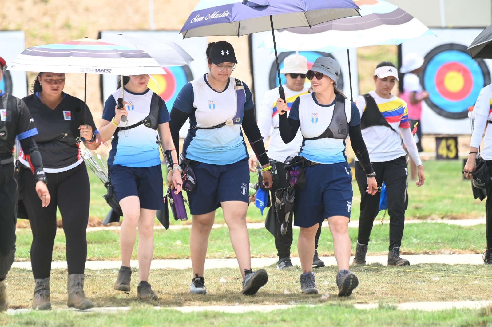Guatemala, con las arqueras Marcela Enriquez, Cinthya Pellecer y Sara Stahl, se impuso en los cuartos de final por 5-1 ante Puerto Rico (Brenda Bruno Rodríguez, Nika Cotto Valentín y Alondra Rivera).