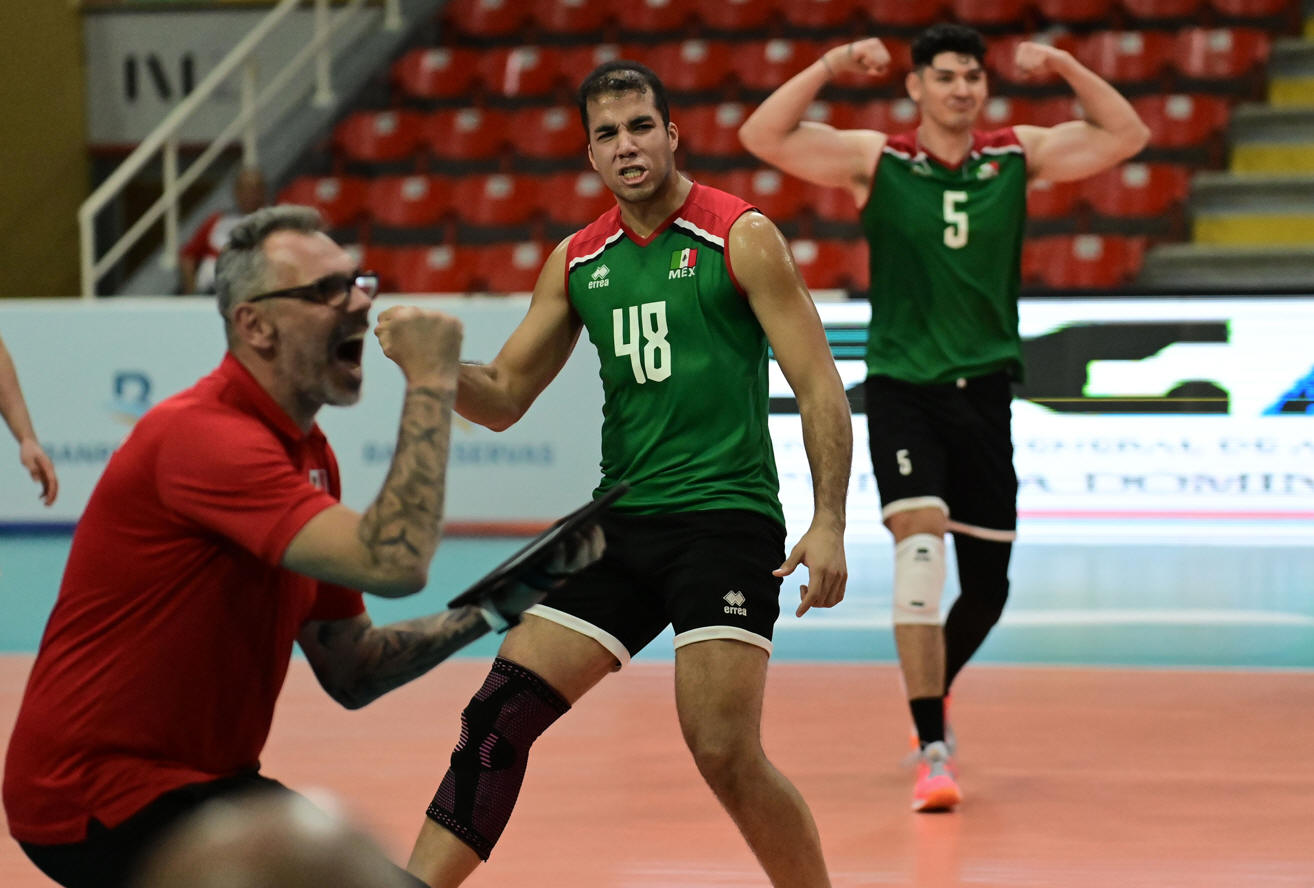SANTO DOMINGO, República Dominicana, 14 de julio de 2024.- En un disputado partido que se extendió al máximo de cinco sets, México se tuvo que emplear a fondo para derrotar a Chile 3-2 (25-22, 25-23, 19-25, 15-25, 15-13) y obtener su primera victoria en la XVII Copa Panamericana de Voleibol Masculina en el Pabellón de Voleibol “Ricardo Arias”.