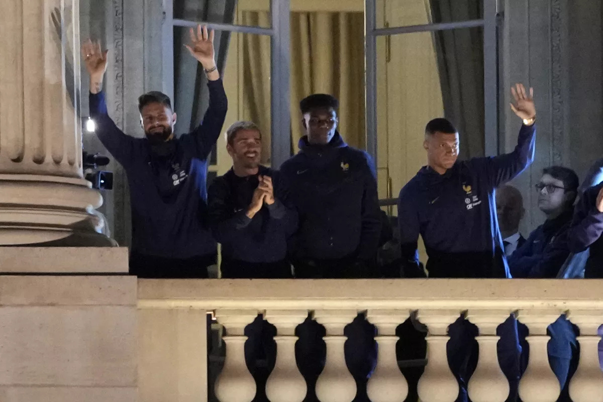 Muchos encendieron bengalas, agitaron banderas y cantaron “La Marsellesa” mientras los futbolistas y el técnico Didier Deschamps se asomaban por el balcón del Hotel de Crillon.