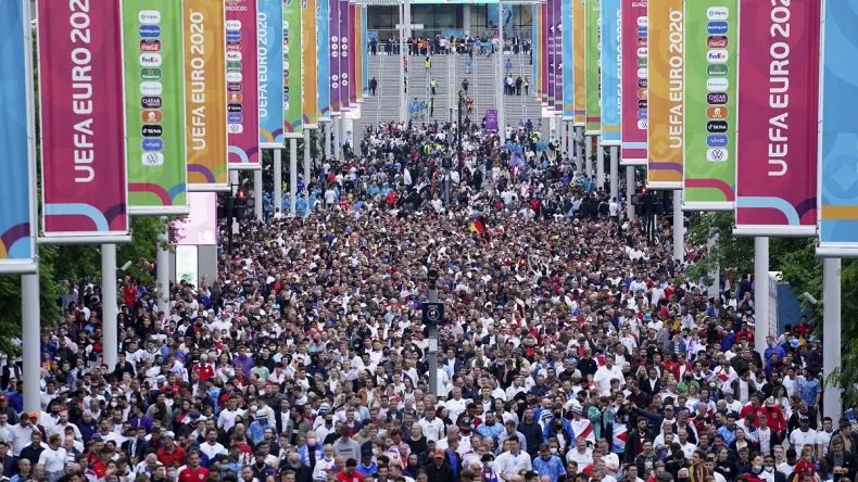 Las 41.973 personas que acudieron al estadio londinense son la mayor entrada en un encuentro en Gran Bretaña desde el inicio de la pandemia, y se produjo en pleno rebrote de los casos de COVID-19 alimentado por la variante delta, más contagiosa.