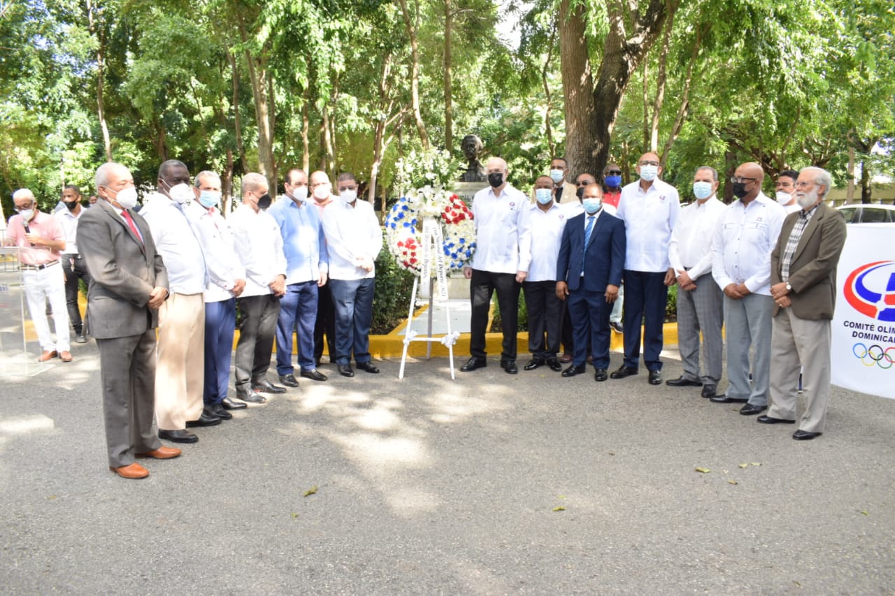 Santo Domingo.- El ministro de Deportes y Recreación (Miderec), Francisco Camacho, depositó una ofrenda floral en el busto del padre de la patria Juan Pablo Duarte, como parte de las actividades con los que la cartera deportiva conmemoró el Día Nacional del Deporte.