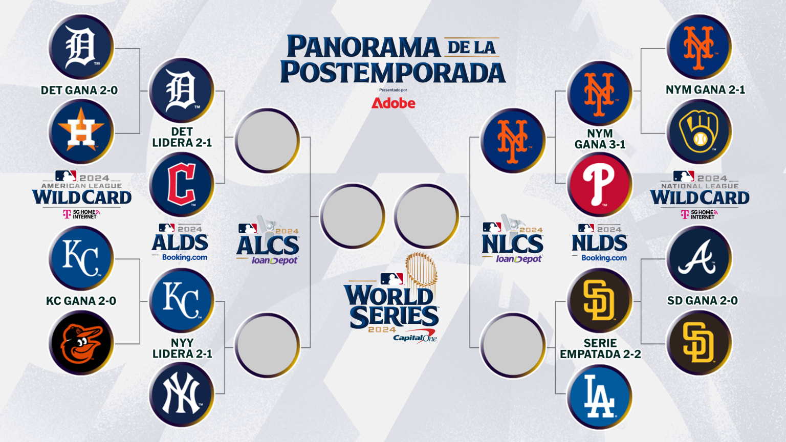 La Serie de Campeonato de la Liga Nacional está pautada para iniciar el domingo 13 de octubre, mientras que la Serie de Campeonato de la Liga Americana comenzará el lunes 14. Los posibles Juegos 7 serían el lunes 21 de octubre en la Liga Nacional y el martes 22 de octubre en la Liga Americana.