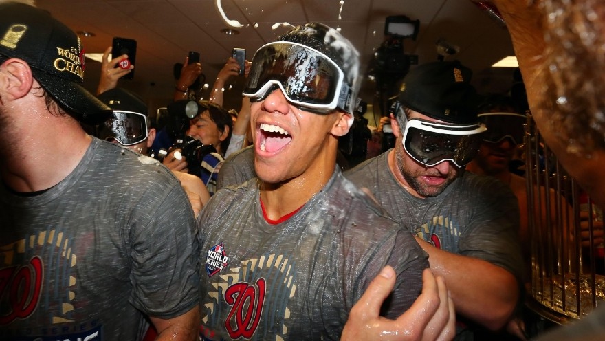 El dominicano Juan Soto, en la celebración de la corona mundial de los Nacionales de Washington/ Fuente Externa