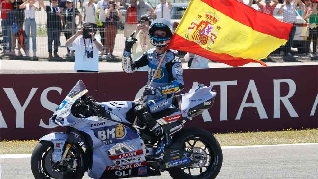 El podio lo completó el italiano Enea Bastianini (KTM), después de resistir la presión en un circuito que exigió máxima concentración por el bajo agarre del asfalto tras la lluvia nocturna.