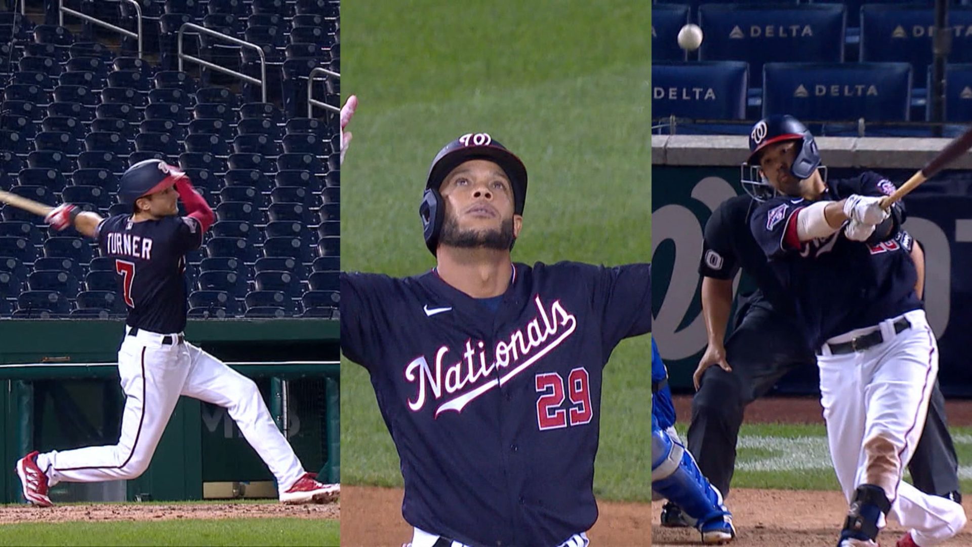 Por los Nacionales, los dominicanos Juan Soto de 2-0, Víctor Robles de 3-0. El cubano Hernández de 3-0.