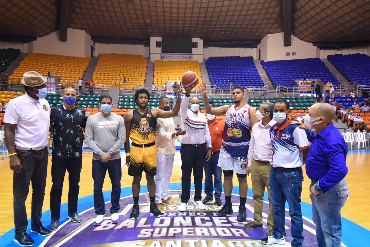 SANTIAGO.-El comunicador Nelson Javier (El Cocodrilo) realizó el Saque de Honor en el partido decisivo de la Serie Final del Baloncesto de Santiago que ganó el Club Gregorio Urbano Gilbert 103-78 a la representación del Club Pueblo Nuevo.