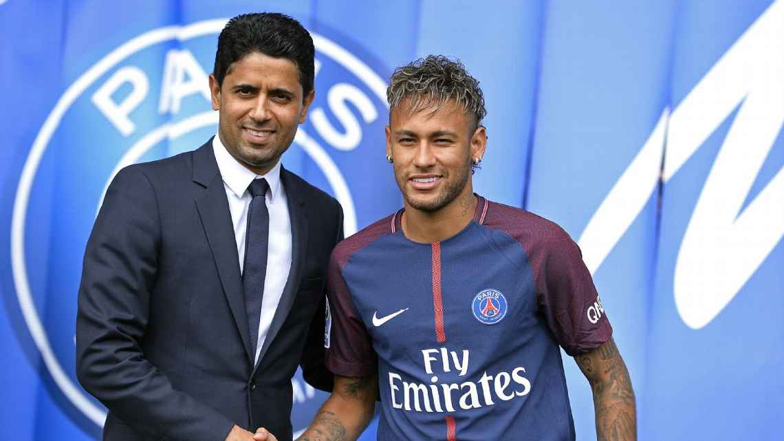 Neymar durante la presentación en el PSG de Nasser Al-Khelaifi Getty Images