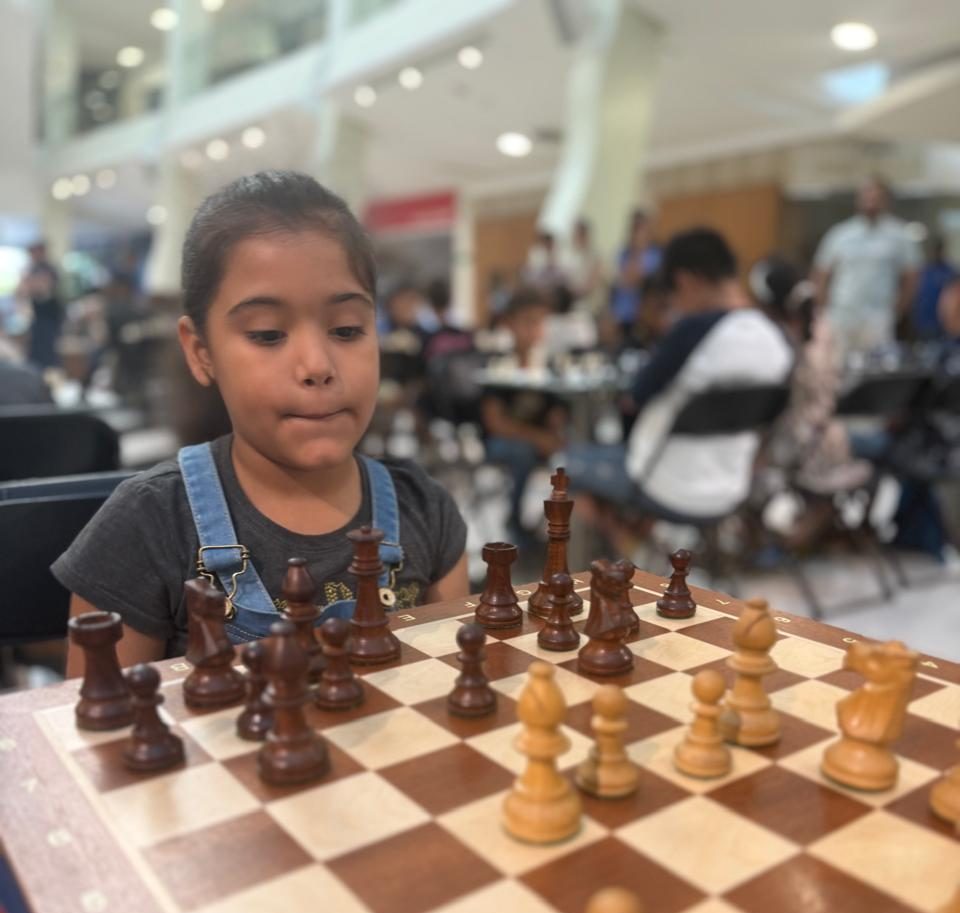 Este evento, celebrado el pasado domingo 22 en la plaza comercial Acrópolis, reunió a 57 niños menores de 12 años, y Esther Mariel se destacó al obtener la segunda posición en la categoría de 7-12 años, acumulando 3.5 puntos en 7 rondas bajo el sistema suizo. La primera posición fue para Pablo García Chan, del colegio American School of Santo Domingo (ASSD).
